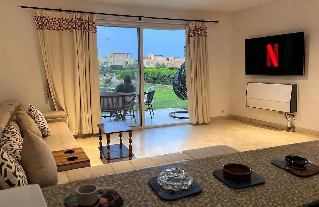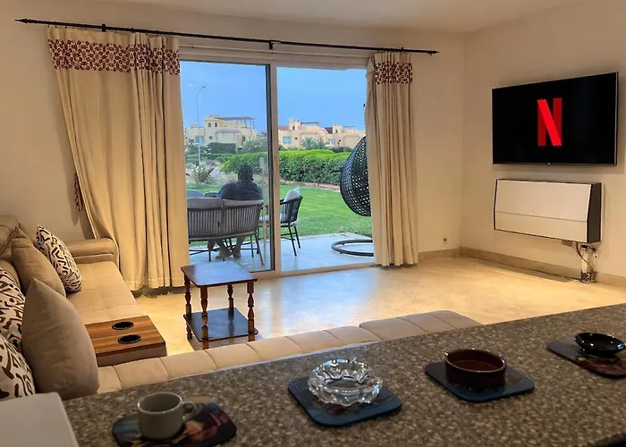 Disfruta de tus vacaciones en Ain Sukhna en el 3 Bedrooms Chalet Beachside Ain Sukhna. Ideal para quienes buscan una experiencia auténtica, está situado a 15 minutos a pie del Tulip Resort Ain El-Sokhna y a una distancia de 1 km del Club M, Azha. Este apartamento cuenta con acceso a terraza y una sala de estar compartida, así como un salón compartido con vistas al jardín.